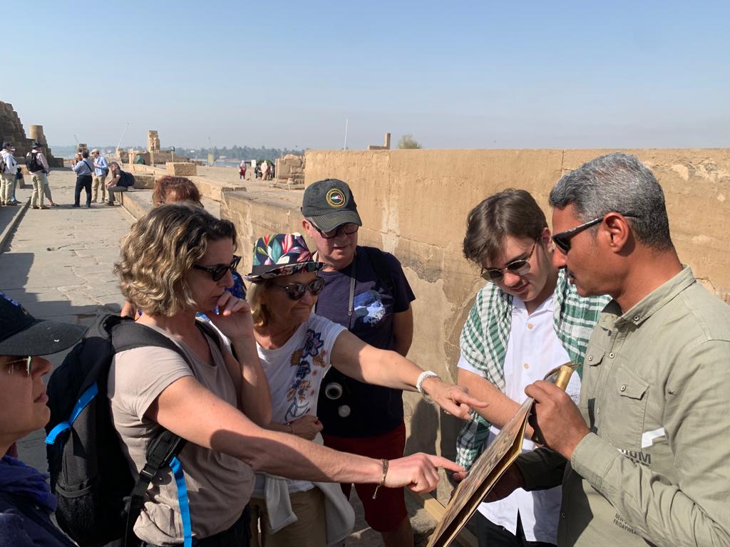 À nos côtés se trouve également l’égyptologue française Aude Gros de Beler, qui apporte par son expertise académique une touche singulière, transformant certaines visites en véritables découvertes vivantes des secrets et de la vie quotidienne des anciens Égyptiens.